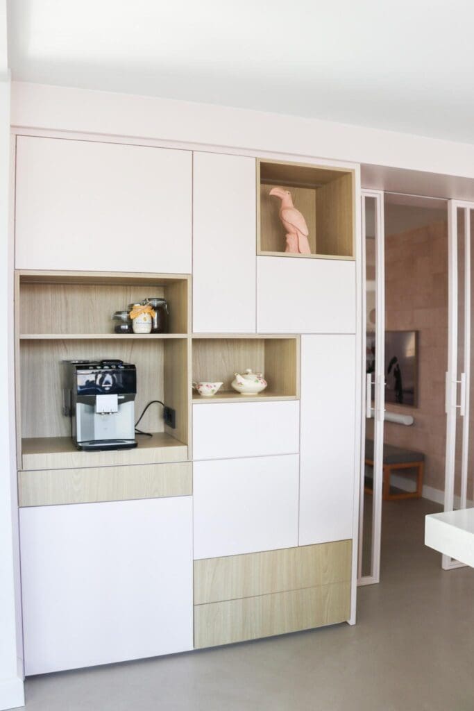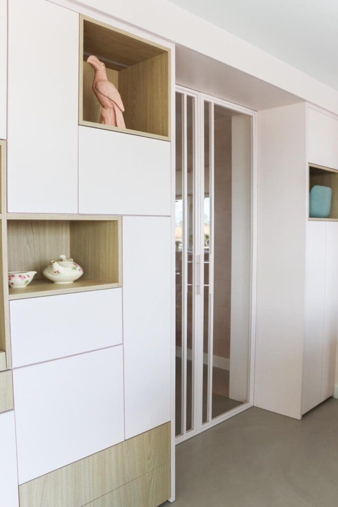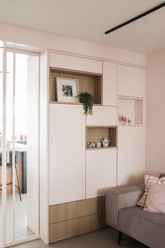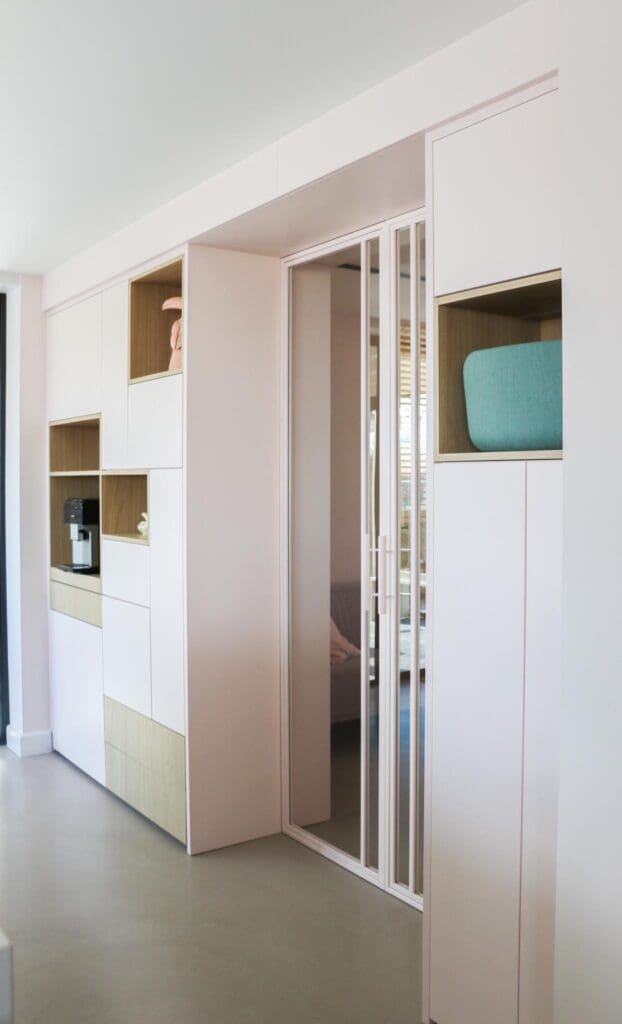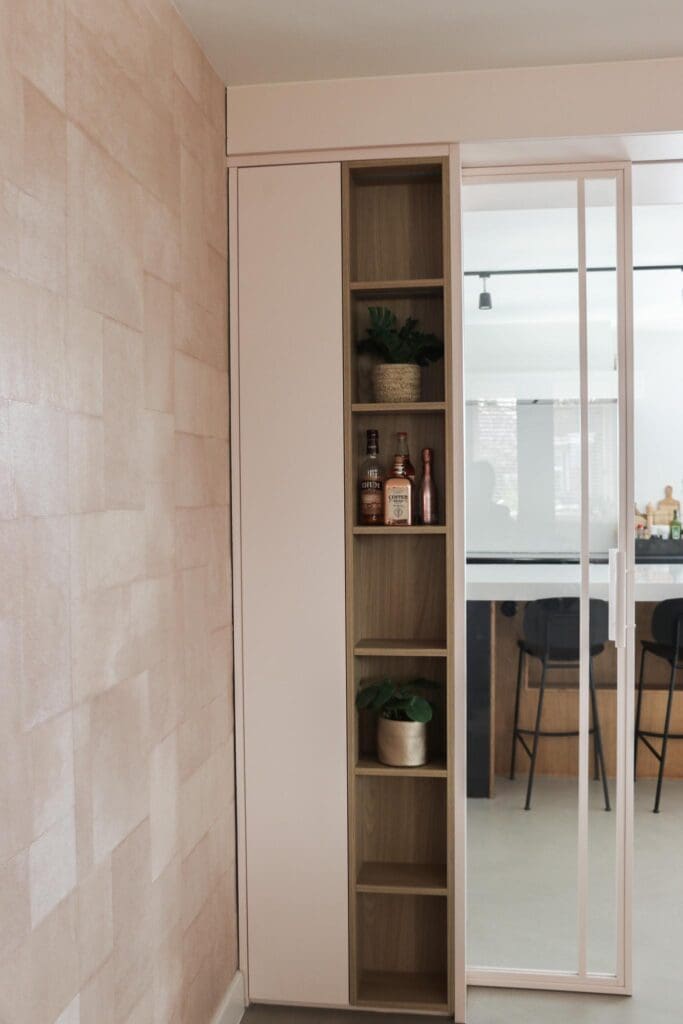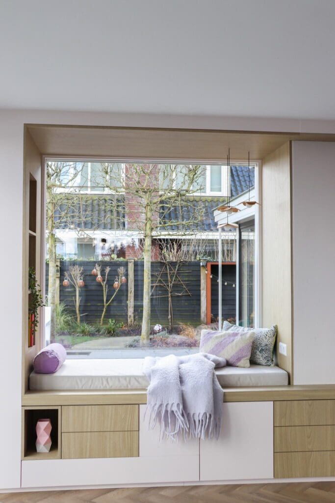 Voor een woning in Alblasserdam mocht ik dit heerlijke zitje/maatwerk en maatwerk ensuite ontwerpen. Multifunctionele kasten waarin je lekker kunt chillen, opbergen, ruimtes van elkaar kan afscheiden en decoreren. En hoe leuk is het om eens een roze kast te zien? Ik blij, klant blij!