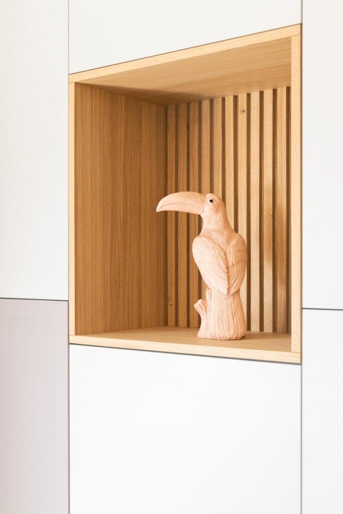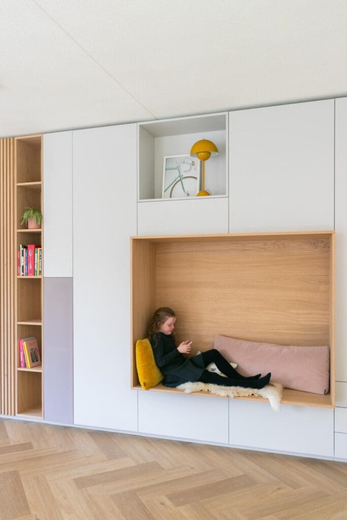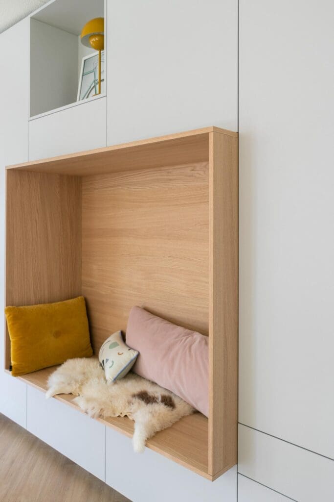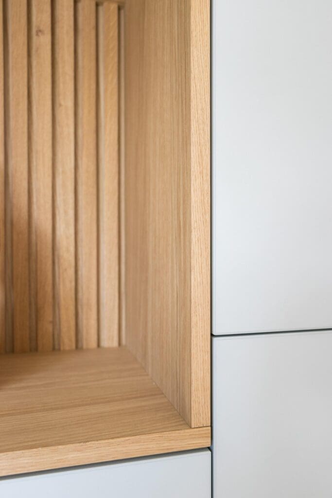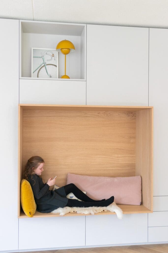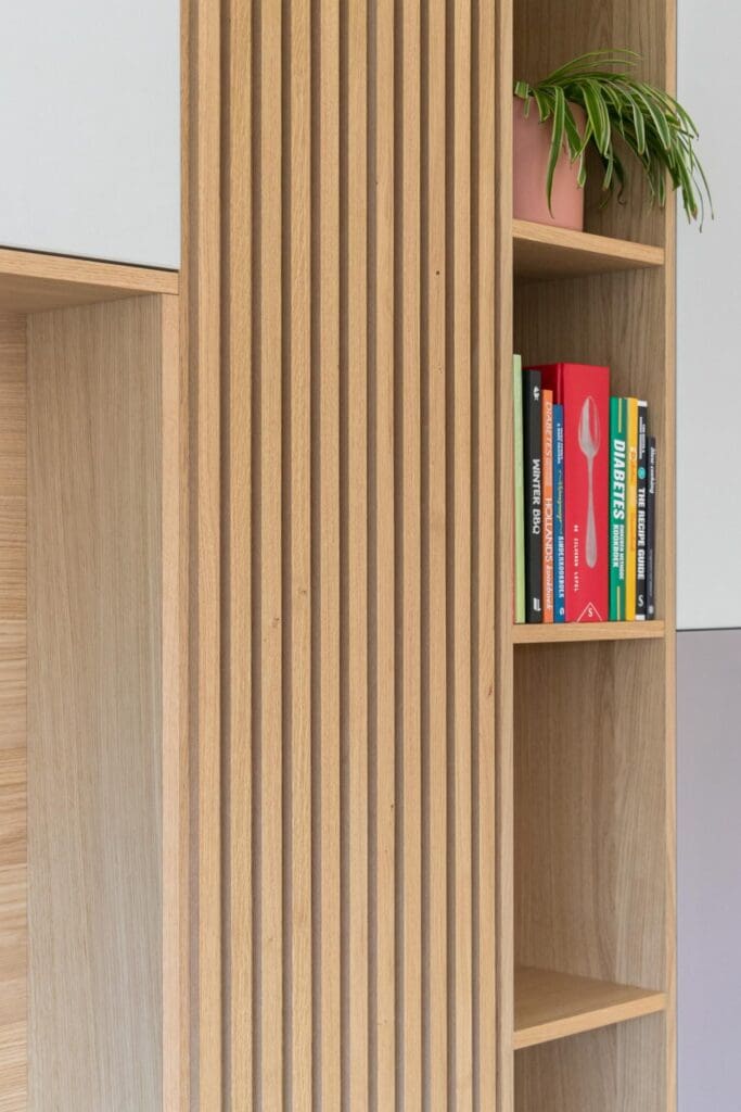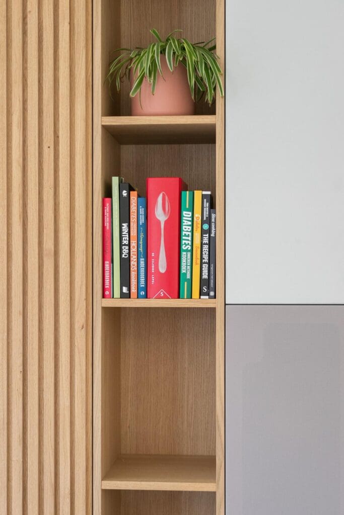 Voor deze mooie woning in Almere mocht ik een maatwerk kast van maar liefst 8 meter ontwerpen. Door de juiste vakverdeling is dit een mooi passend geheel geworden. Alle functies zie je hierin terug: opbergen, tv kijken, zitten/relaxen en er is ook ruimte om er mooie dingen in neer te zetten. Daarnaast is er ook gewerkt met speakerdoek om de speakers een mooie plek in het geheel te geven. Wie wil zo’n kast nou niet?