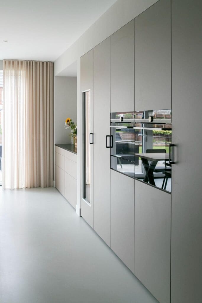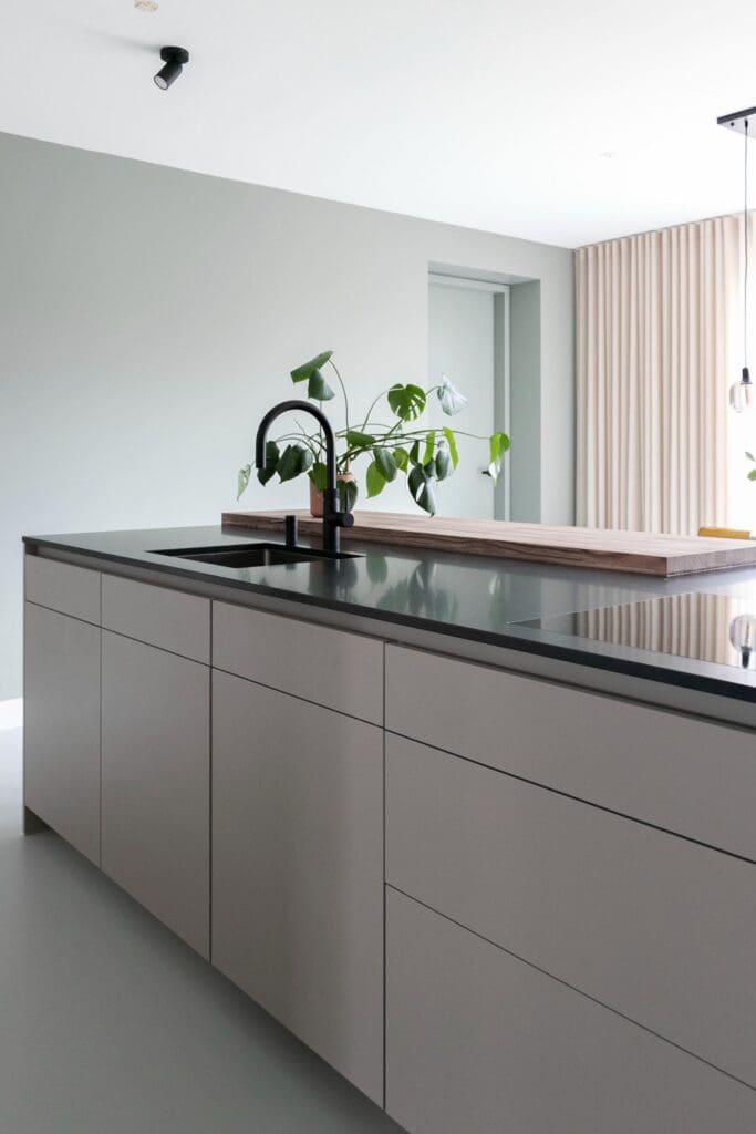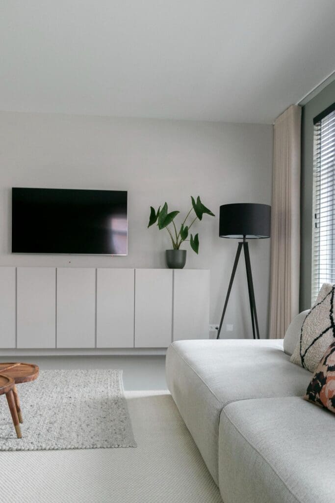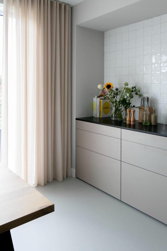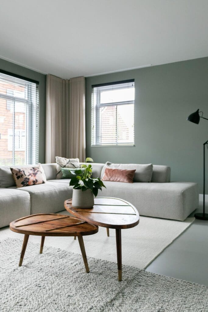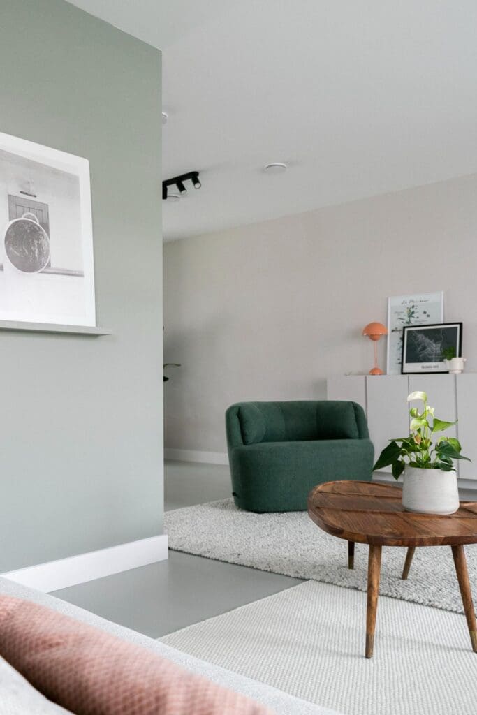 Voor deze ruime nieuwbouwwoning in Gorinchem maakte ik een compleet interieurontwerp voor de benedenverdieping. De wens was een zacht geheel met zand, beige en groentinten. Door gebruik te maken van kleuren die dicht bij elkaar komen is het een passend geheel geworden dat mooi in elkaar overloopt.