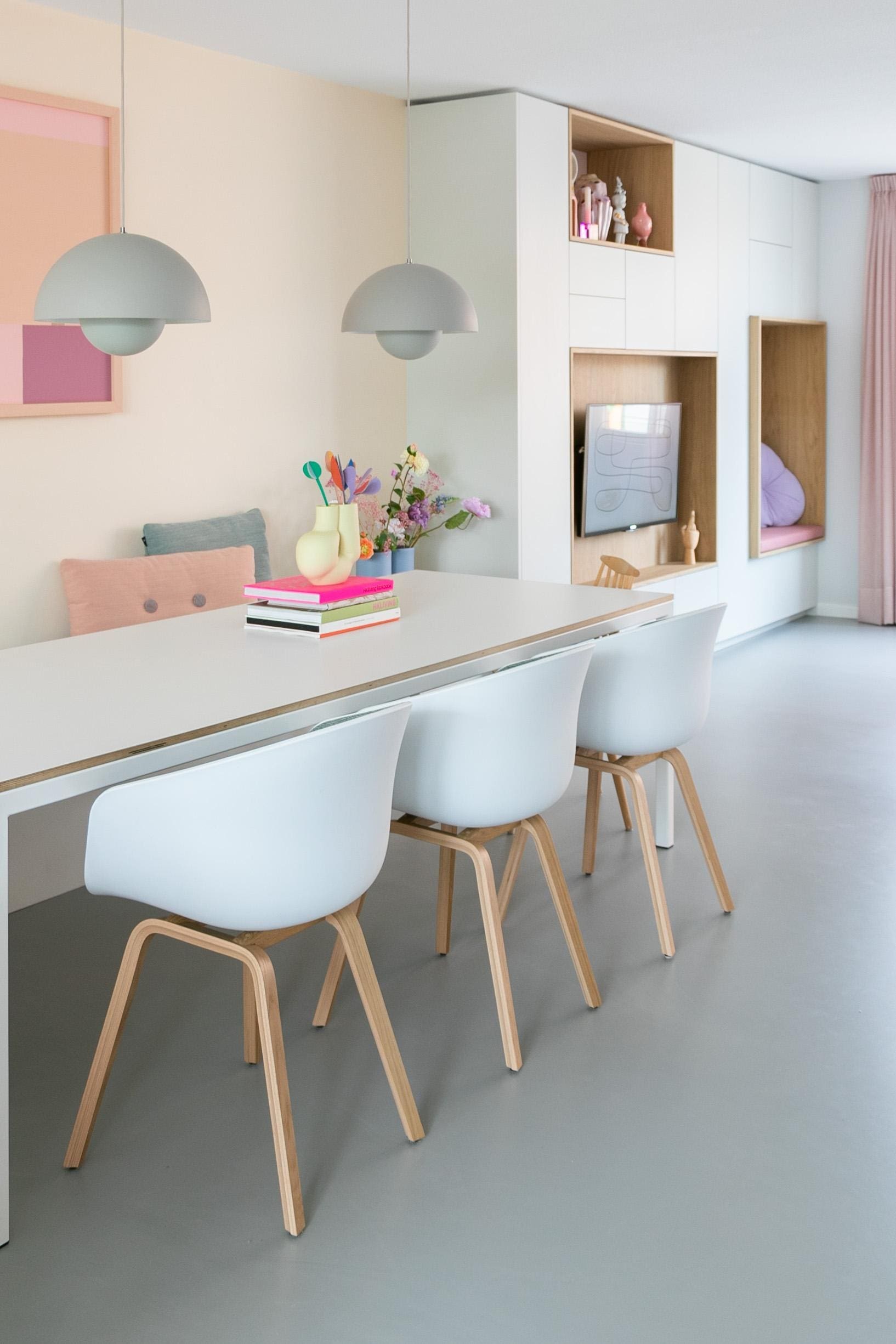Voor deze mooie woning in Dordrecht ontwierp ik een maatwerk kast en gaf ik kleuradvies. Deze maatwerk kast heeft verschillende functies zoals; opbergen, zithoekje voor de kinderen, bergruimte voor o.a. speelgoed en een fijne werkplek. De kast is lichtgrijs met eiken en past hierdoor prachtig bij het geheel.