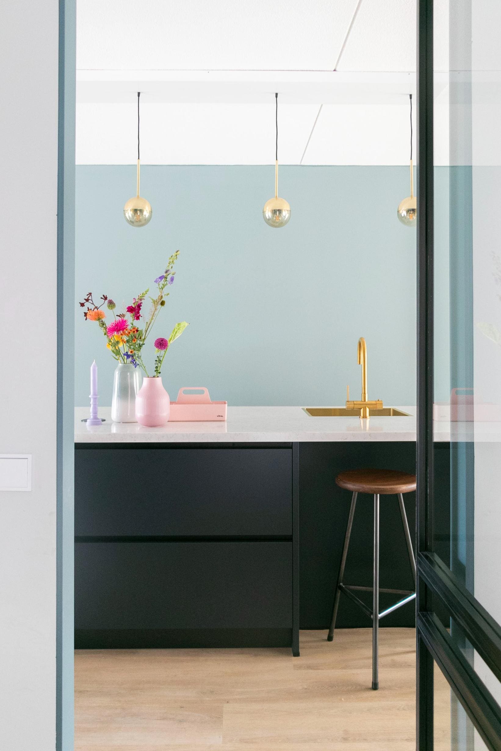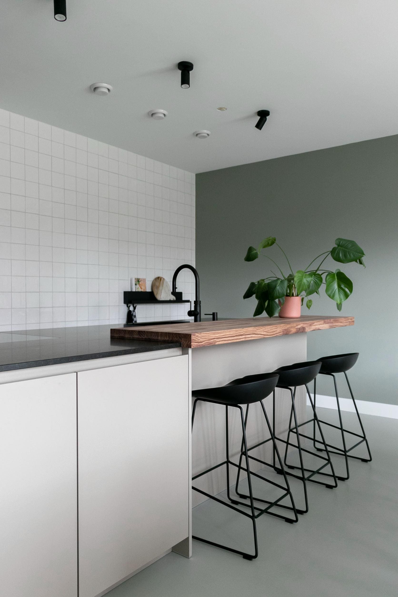 Voor deze toffe woning in Zoetermeer maakte ik een ontwerp voor de keuken. Het idee met de indeling van de keuken was binnen met buiten verbinden en dat is gelukt! De klant is dol op donkere, maar ook op lichte kleuren. Daarom heb ik een combinatie gemaakt van wit, hout en donkerblauw. Ik ben zelf dol op deze kleurencombinatie, omdat het mooi chique en tijdloos is.
