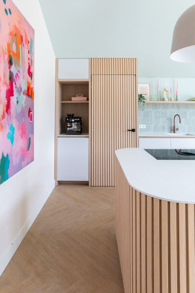 Voor deze bijzondere locatie in Tubbergen mocht ik een compleet ontwerp maken waarin alles samenkomt. De indrukwekkende hoogtes, het maatwerk en de zachte pasteltinten zorgen voor een interieur dat niet alleen opvalt, maar ook rust brengt.
